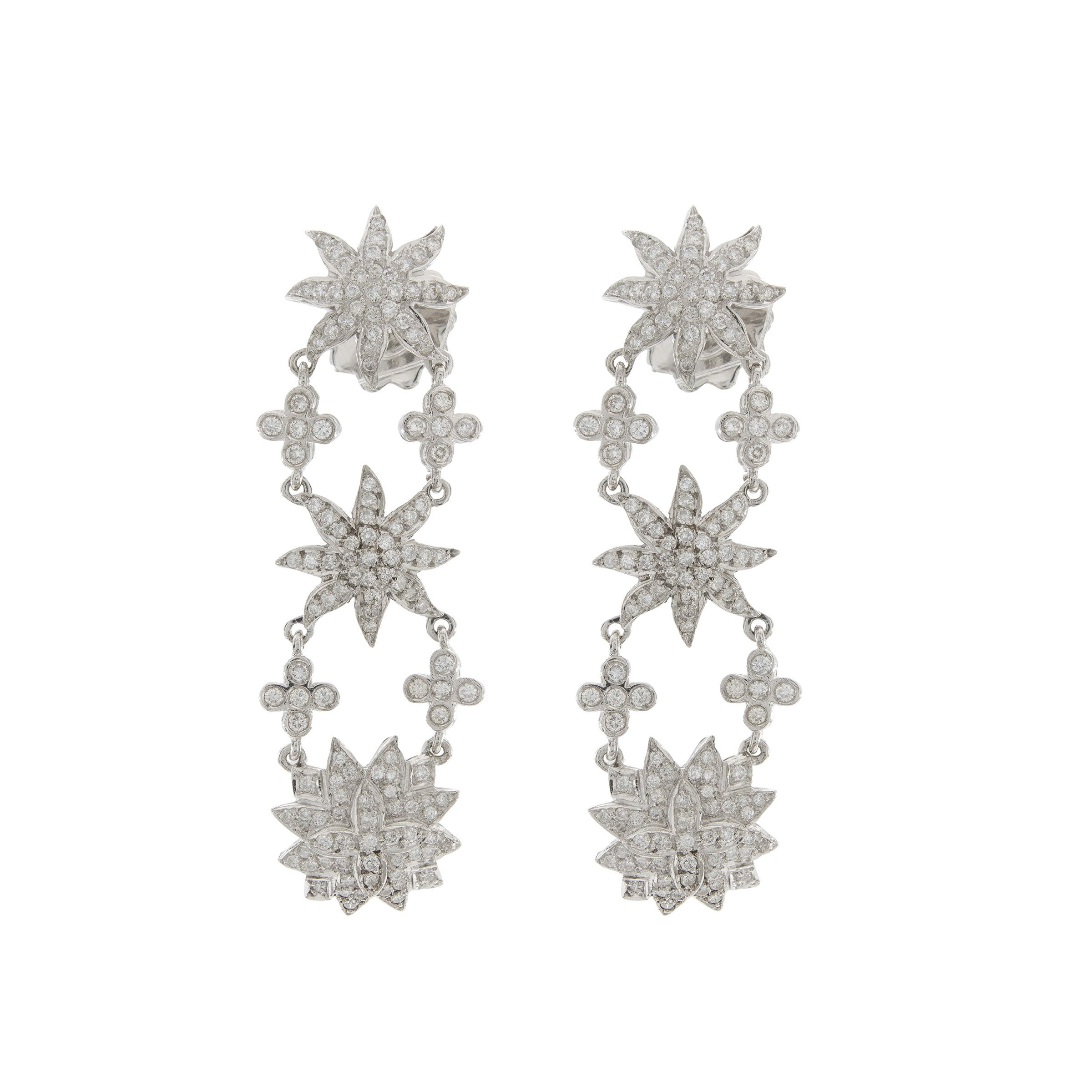 Orecchini stelle pendenti in oro bianco 18kt e diamanti