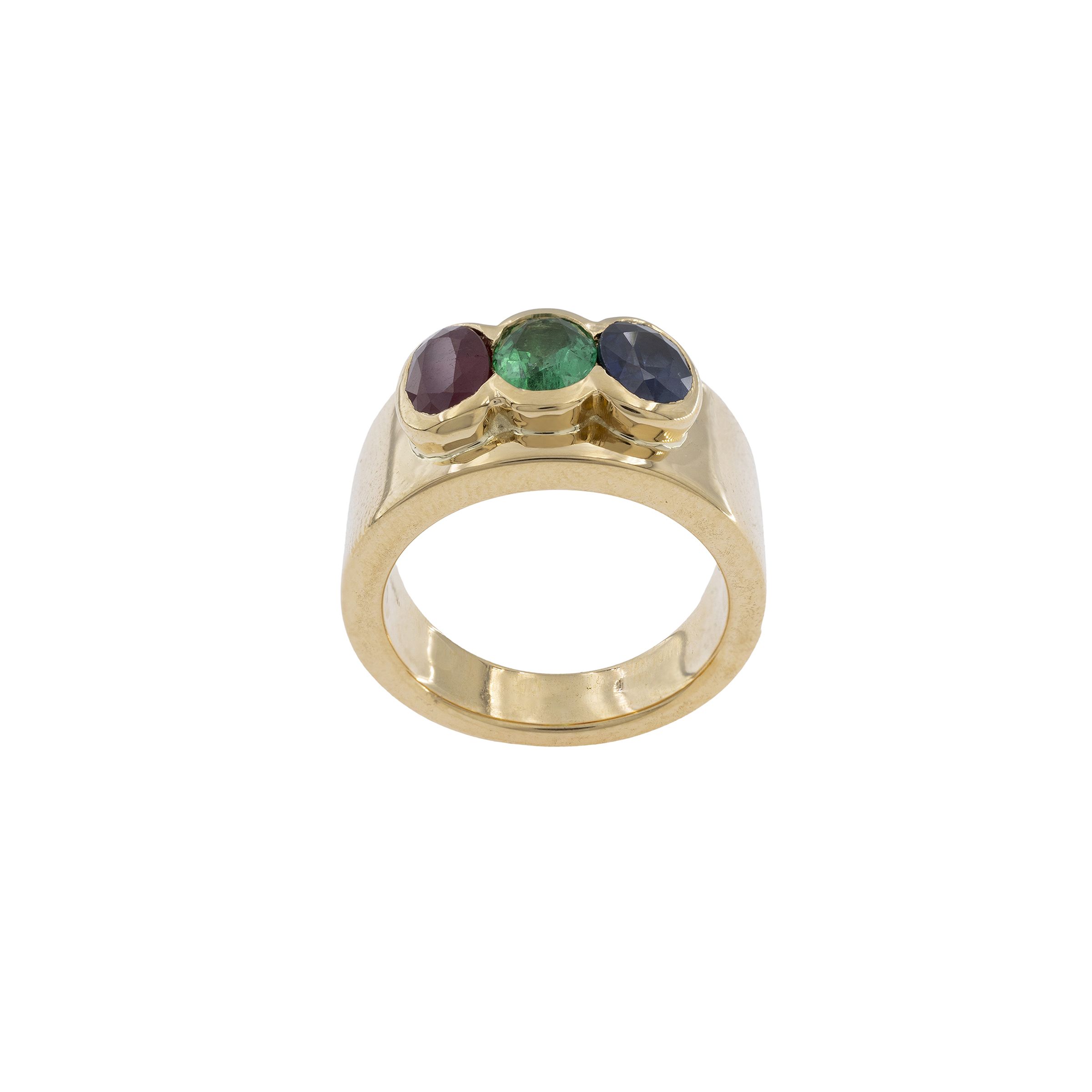 Petochi anello in oro giallo 18kt con zaffiro, rubino e smeraldo