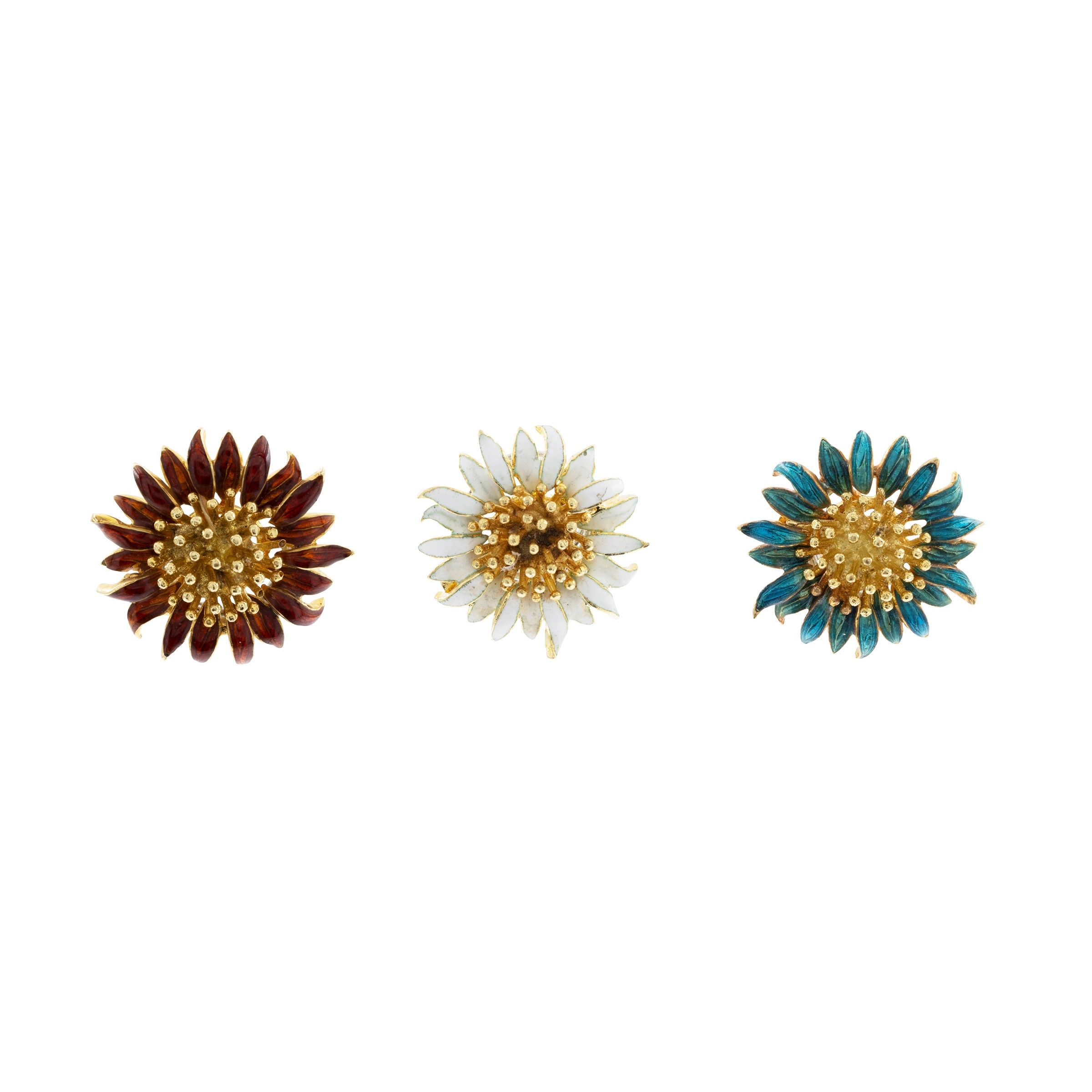 Tre spille copribottone a motivo floreale