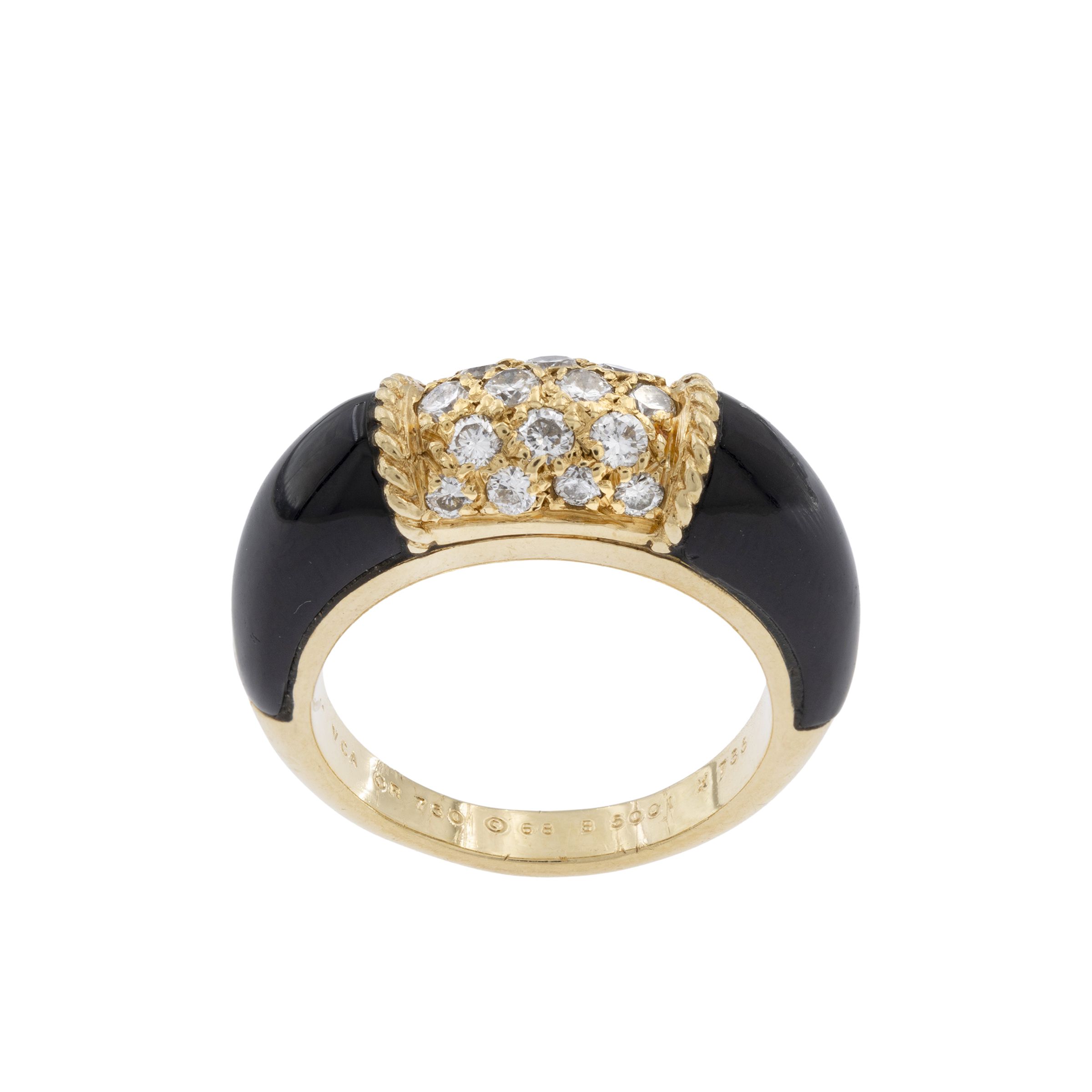 firmato e numerato in oro giallo 18kt diamanti taglio brillante ct 0,40 circa e onice nero, misura 12