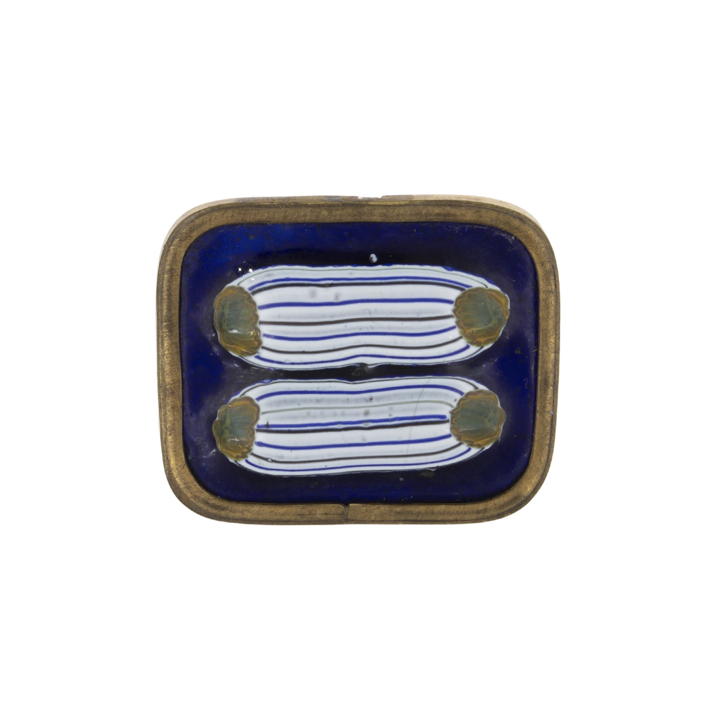 Spilla bijou vintage in metallo dorato e smalto policromo
