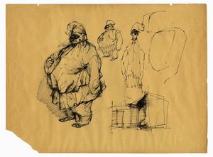 Penna e inchiostro bruno, pennello e acquerello grigio e marrone chiaro, carta vergellata color avorio. mm 17 [..]