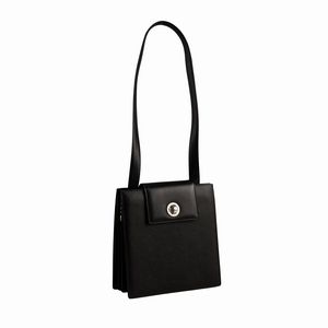 misure 25x23x8 cm. anni 2000 in pelle nera, finiture argentate, interno in tessuto a tre scomparti di cui uno [..]