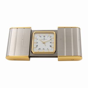 dimensioni 5x3,8 cm. n. 0896 in metallo e metallo dorato, quadrante a scomparsa bianco con numeri romani, datario [..]
