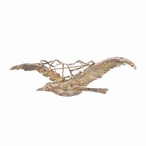Spilla bijou vintage in metallo dorato e smalto policromo