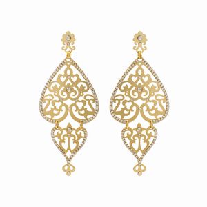 in metallo dorato e strass, lunghezza 8,5 cm.