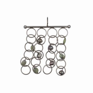 in metallo dorato pietre rosa e verdi e perle di vetro, diametro 6,5 cm.