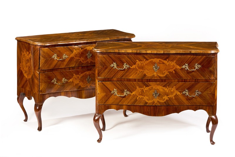 Nella prima sessione spiccano, tra i mobili, un raffinato piccolo scrittoio da centro lastronato e intarsiato in legno di noce, ciliegio, palissandro e mogano, oltre a un imponente tavolo da centro in legno di noce. Tra gli arredi, merita attenzione una splendida specchiera in legno intagliato e dorato.I lotti di punta della sessione includono pezzi di grande pregio tra i mobili, come uno stipo a due corpi in legno di noce intagliato e una coppia di comò lastronati e intarsiati in legno di mogano, radica di noce e ciliegio. Degni di nota anche gli oggetti in ceramica e le opere manifatturiere del Novecento, con pezzi di alta qualità artigianale, tra cui vassoi con manici in maiolica policroma, vasi in maiolica policroma e una suggestiva zuppiera umbonata sempre in maiolica policroma.