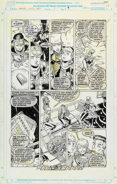 Il cuore supereroistico dell’asta è rappresentato da importanti tavole Marvel e DC, tra cui spicca “Thor - Wandering Gods” di Arthur Adams del 2007 (stima 11.000 / 16.000 euro), dal segno iper-dettagliato e dinamico che ha reso l’artista uno dei più amati dagli appassionati. Dello stesso autore è proposta anche una pagina per “Marvel Holiday Special - A Christmas Coda” del 1991 (stima 4.000 / 6.000 euro), che unisce spirito natalizio e mitologia supereroica. Di grande fascino è inoltre la tavola realizzata a quattro mani da Neal Adams & Bill Sienkiewicz per “Mankind: The Story of All of Us” del 2012 (stima 3.000 / 4.500 euro), incontro generazionale tra due maestri che hanno ridefinito il linguaggio realistico e sperimentale del fumetto americano.