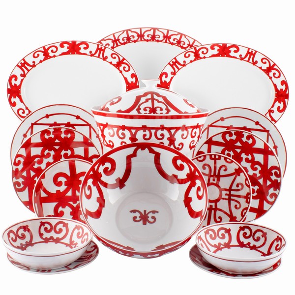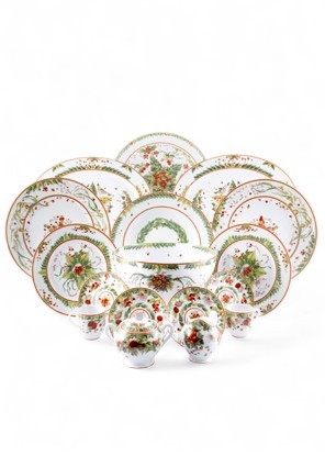 Romanticismo e prestigio caratterizzano invece il servizio Herend “Apponyi Pink” (lotto 73), in porcellana rosa cipria con profili dorati, composto da 24 piatti piani. Stima: € 2.500 – 3.500.Tra i pezzi da non perdere, anche il servizio Hermès “Le Jardin de Pythagore” (lotto 190), dove motivi geometrici e floreali si intrecciano su porcellana bianca. Stima: € 3.000 – 4.000.