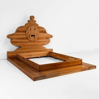 Tra gli arredi per la zona notte, un pezzo di grande valore è il letto modello Bocca della Verità di Mario Ceroli, parte della serie Mobili nella Valle e prodotto da Poltronova nel 1974. La struttura in legno e la firma incisa dell’artista lo rendono un oggetto ricercatissimo, con una stima tra i 3.000 e i 5.000 euro.