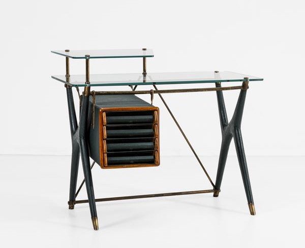 Infine, tra le proposte più esclusive si distingue la scrivania firmata Silvio Berrone, prodotta da V.I.S. nel 1957. Realizzata con una sofisticata combinazione di legno, ottone e vetro Vitrex, con una cassettiera arricchita da dettagli in vetro temperato, questo pezzo raro raggiunge una valutazione compresa tra gli 8.000 e i 10.000 euro.