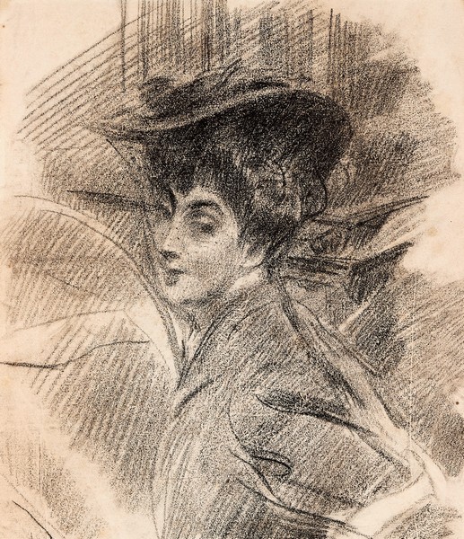 Un tuffo nel passato con due disegni di Giovanni Boldini (lotti 337 e 339, stima tra €7.500 e €12.000), raffiguranti eleganti ritratti di signore con cappello. Tra gli artisti stranieri, si distingue Karl Wilhelm Diefenbach con Corpo siderale (lotto 335, stima €8.000 / 12.000).