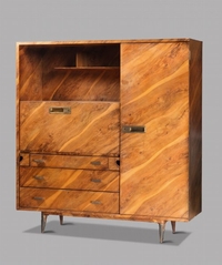 Gio Ponti è uno dei protagonisti principali del catalogo, con un top lot rappresentato dalla porcellana dipinta Penelope, stimata tra € 10.000 e 12.000. In aggiunta, saranno offerti due pezzi unici da camera: un armadio secrétaire (lotto 147, stima € 13.000 – 18.000) e un letto singolo con testiera multifunzionale (stima € 12.000 – 15.000).
