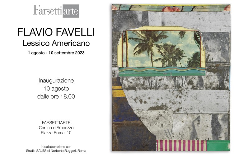 Nella sede di Cortina d’Ampezzo, Farsettiarte dall'1 agosto al 10 settembre 2023 presenta "Lessico Americano", la personale di Flavio Favelli. In mostra, una selezione di opere, tra collage e assemblaggi.
