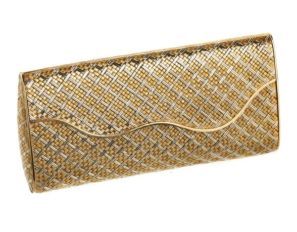 Il top lot della vendita è una preziosa borsetta da sera in oro giallo e bianco 18 kt, realizzata a maglia tessuta e completa di specchio interno: un esempio raro e ricercato di alta oreficeria.