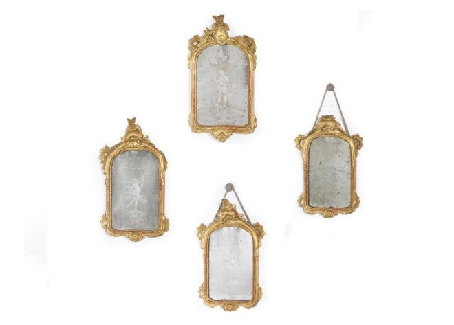 Tra i lotti di maggior rilievo spicca un elegante gruppo di quattro specchiere del XVIII secolo, con vetri incisi raffiguranti allegorie delle stagioni. Si tratta di oggetti di grande raffinatezza, stimati complessivamente tra i 2.400 e i 3.800 euro e capaci di valorizzare qualsiasi spazio con la loro eleganza.