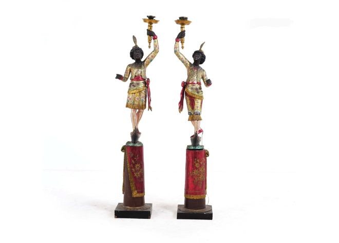 La sezione dedicata all’oggettistica presenta una selezione altrettanto curata come una coppia di mori in legno intagliato, laccato e dorato, Venezia, XIX-XX secolo (stima 500–800 euro) e una coppia di piedistalli in ceramica policroma del XX secolo, stimata tra i 300 e 400 euro.