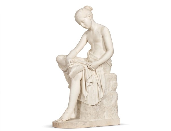 Il ritratto intimo La fanciulla che si allaccia i sandali, modellato con sensibilità ed eleganza neoclassiche, tra le opere protagoniste dell’asta Sculture dal XV al XIX secolo del 26 ottobre prossimo.