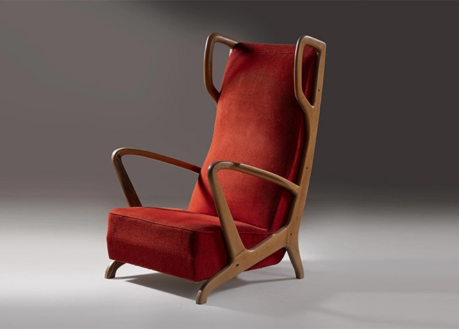Presenti all'interno del catalogo, poi, alcune opere di Gio Ponti come una poltrona in legno, imbottita e rivestita in tessuto nei toni del rosso, produzione Casa e Giardino, Italia, 1935 circa, valutata tra i 15.000 e i 20.000 euro.