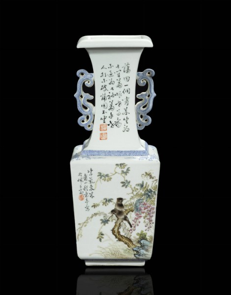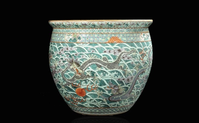 Del catalogo d’aste, si segnala una raffinata selezione di porcellane, proveniente da un’importante collezione privata di Milano: uno scaldavivande in porcellana Famiglia Rosa marchiato e del periodo Guangxu; una scatola in porcellana Famiglia Rosa finemente decorata con galli entro riserva; una coppia di vasi in porcellana Famiglia Rosa con decori floreali e uccelli sui rami; una vasca per pesci in porcellana Famiglia Verde decorata con draghi tra le onde; una coppia di cani di Pho in porcellana Famiglia Verde; un gruppo in porcellana Famiglia Verde raffigurante ragazzi che sorreggono una giara e una vasca da punch in porcellana Famiglia Rosa di epoca Qianlong.