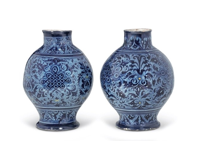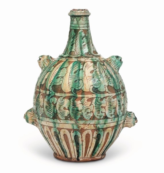 Tra le prime maioliche italiane in asta, si distinguono, una piccola serie di graffiti rinascimentali, tra cui un piatto del 1470-1480 proveniente da Mantova o Ferrara in ottimo stato di conservazione, e una fiasca modenese del XVI-XVII secolo. Una serie di mattonelle da rivestimento liguri e spagnole dell’inizio del Cinquecento. Due rari vasi a boccia da farmacia di Faenza, della metà XVI secolo, decorati in splendide tonalità di azzurro.
