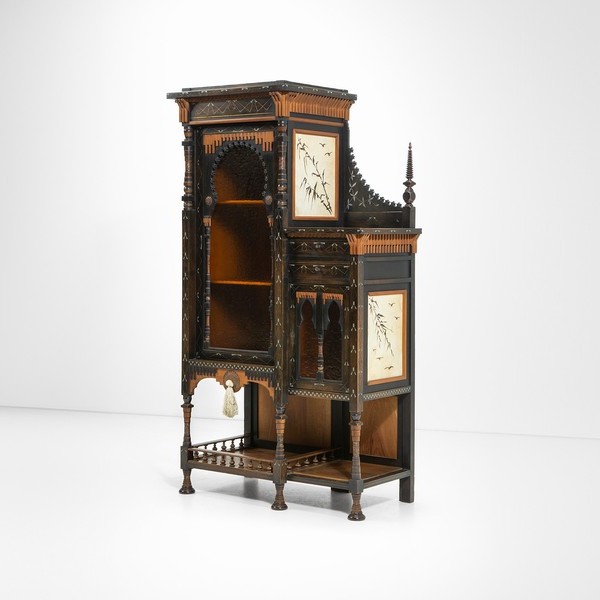 Spiccano in catalogo di Carlo Bugatti due poltrone risalenti circa al 1900 (Stima: € 18.000,00 - 22.000,00), una preziosa credenza, sempre del 1900 circa, eealizzata in legno lavorato e ebanizzato (Stima: € 15.000,00 - 20.000,00). Spicca inoltre il mobile modello Bastonio CS. 114 con specchio modello Orsetta SP.47 di Ettore Sottsass per Poltronova (Lotto 79), datato 1966. Il mobile, con dimensioni di 60x114x h 101 cm, è realizzato in diverse essenze di legno con una finitura policroma che riflette lo stile vibrante e innovativo di Sottsass. .